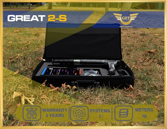 GREAT S2 merupakan produk pencari emas dan harta karun dari Great Detector produksi Jerman yang dilengkapi dengan 2 system pencarian. Fitur yang ditawarkan akan memudahkan pengguna dalam mencari harta karun dan emas. Berikut 2 sistem unggulan yang terdapat pada GREAT S2.