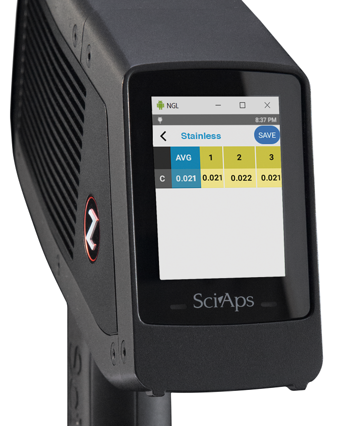 Banyak operator yang memiliki satu atau lebih XRF untuk PMI/NDT. Ini adalah alat yang mereka sukai untuk paduan suhu tinggi, dan untuk elemen yang berkontribusi pada karbon ekuivalen (CE), residu, dan kadar baja tahan karat: V, Mn, Cr, Ni, Cu, Nb, Mo. Namun, XRF tidak mengukur karbon dan oleh karena itu tidak ada ekuivalen karbon, tidak ada pemisahan antara baja tahan karat kelas L dan H, Anda juga tidak dapat menggunakan formula RE rendah yang lebih memaafkan (Ni + Cu) <0,15%. CSi adalah alat yang sempurna untuk operator yang memiliki XRF dan membutuhkan pengukuran karbon sesekali. Alat ini memberikan hasil karbon yang cepat dan andal untuk melengkapi pengujian XRF, dengan biaya yang lebih rendah daripada sistem LIBS lengkap untuk karbon plus paduan. Dan penggabungan data dan pembuatan laporan berbasis cloud dari SciAps menyatukan semuanya dalam satu laporan.
