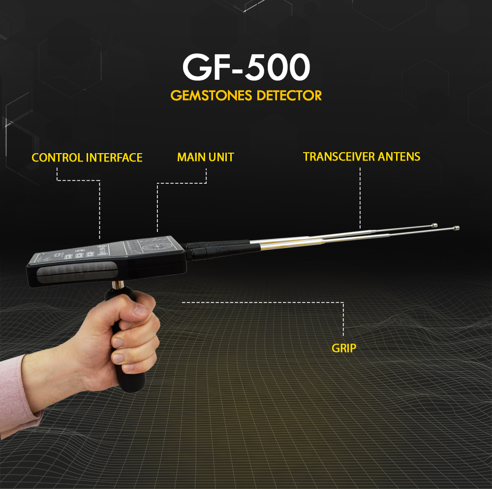GF-500 menawarkan gelombang frekuensi ketelitian tinggi yang memungkinkan untuk mengidentifikasi dan mendeteksi lokasi target di bawah tanah, seperti berlian dan batu permata secara teliti dimana perangkat ini dapat menemukan target dari jarak 200 meter dan sudut 360 derajat dengan fitur kontrol yang tepat pada pencarian jarak horizontal, dimana terdapat beberapa tingkat jarak pencarian, pengguna dapat menyesuaikan sesuai dengan kebutuhan mereka pada pemindaian horizontal, kedalaman pencarian pada perangkat GF-500 dapat mencapai hingga 10m di bawah tanah dengan kemungkinan kontrol yang tepat pada kedalaman pencarian,